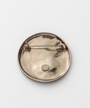 艶のある波打ったサークルが特徴的なオリジナルデザインのブローチは大小サイズの2点セット。ストールなどを留めてスタイリングのアクセントにできます。ロゴマーク入りのベロア袋付きでギフトにも最適。