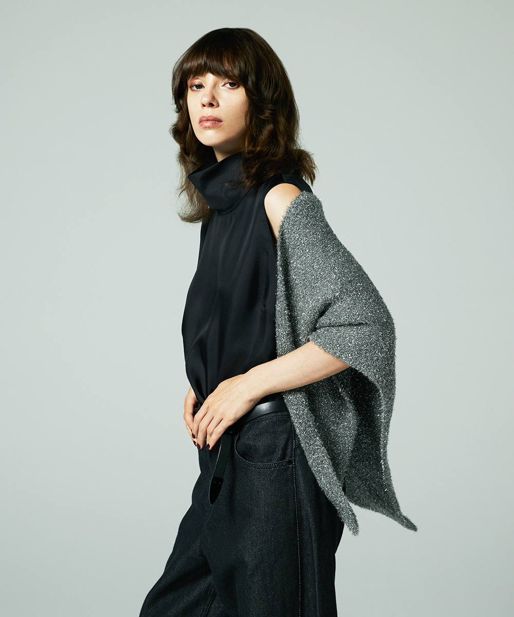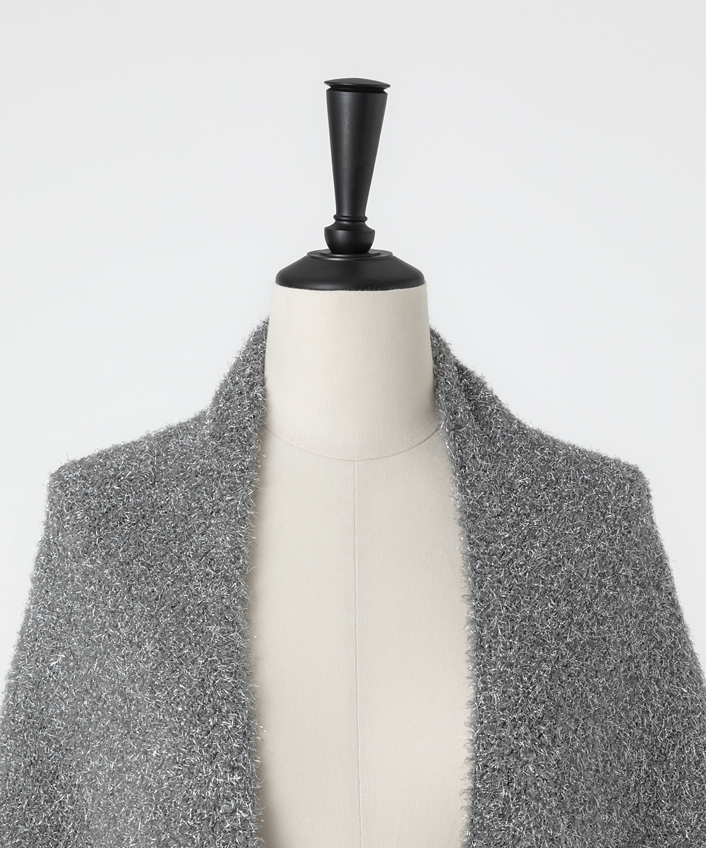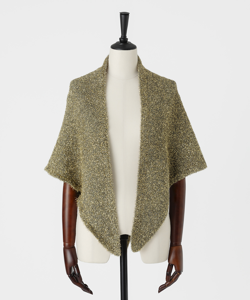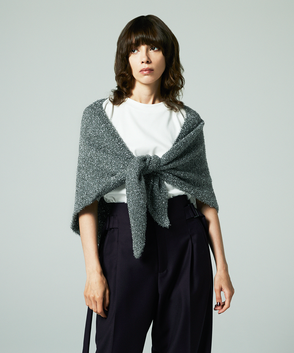 フィルムラメの光沢が華やかなソフトな肌さわりのストール。衿元のアクセントに汎用性の高いアイテムです。イタリア糸。森林保護のFSC認証を受けたパルプから作られたヴィスコースとラメのポリエステルフィルムをMIXした素材感が特徴的でエレガントなニットです。ポリエステルフィルムは光の反射の角度によって光沢感が変わり、様々な色合いを映し出します。フィルム特有の肌への刺激がなく、ソフトな風合いが特徴です。※FSC認証(ForestStewardship Council認証)とは、森林の管理や加工・流通過程が適切に行われていることを認証する国際的な制度です。森林の生物多様性や地域社会の保護を目的としいます。