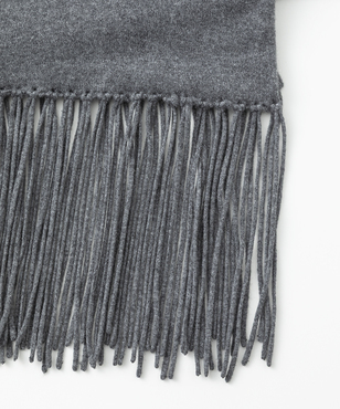 滑らかに暖かく体を包み込むオーバーサイズ。手作業で施したフリンジがアクセントになった上質なストールです。カシミア仔山羊から初めて刈り取られる産毛を紡績した、極めて柔らかいBABYカシミヤの糸を使用。薄地を2層に重ねる事でハイゲージ特有の滑らかさと贅沢なボリューム感のある素材です。