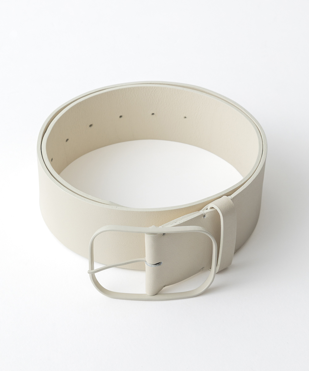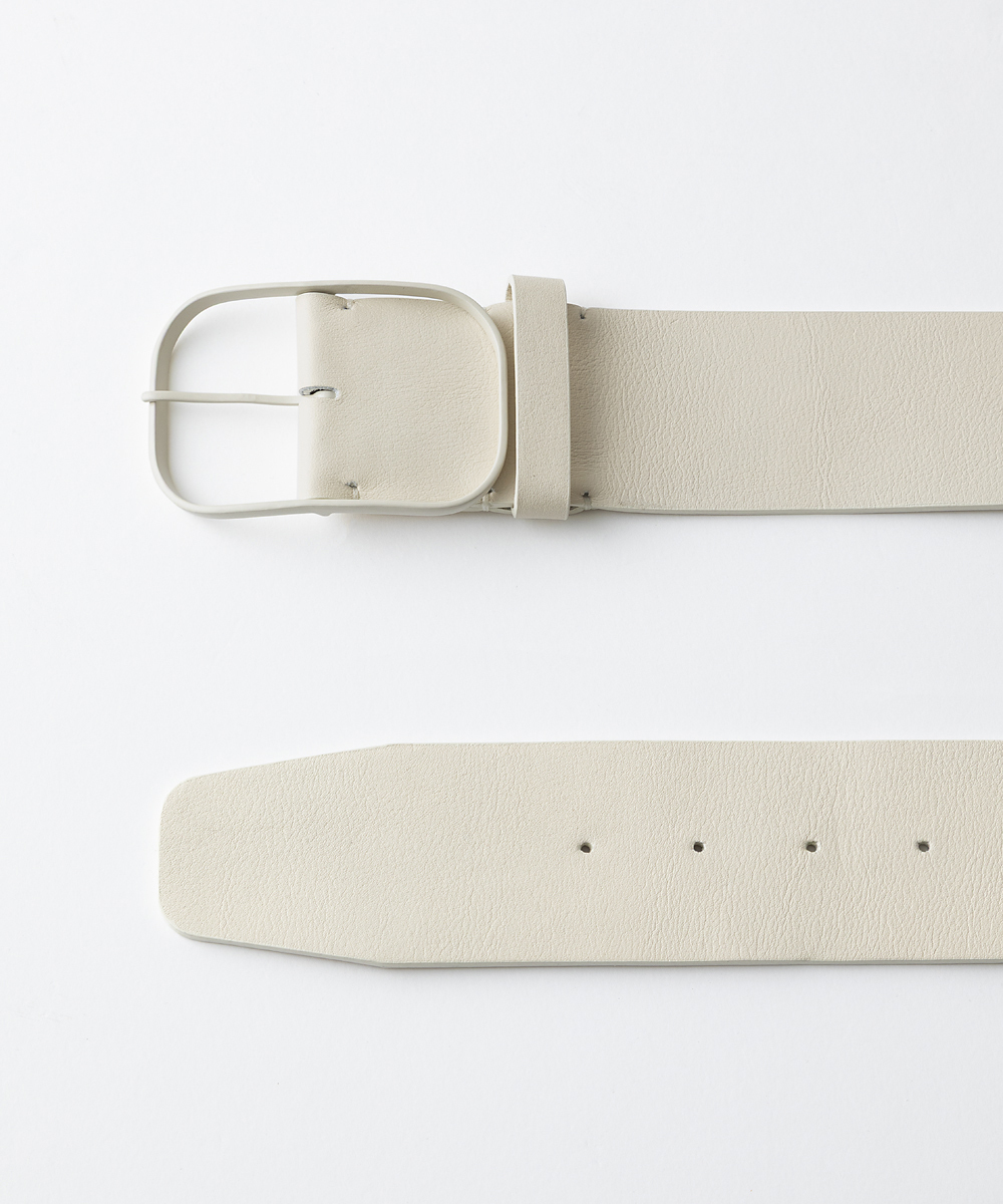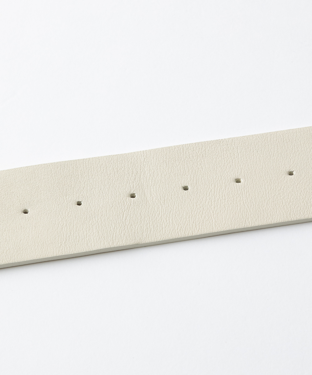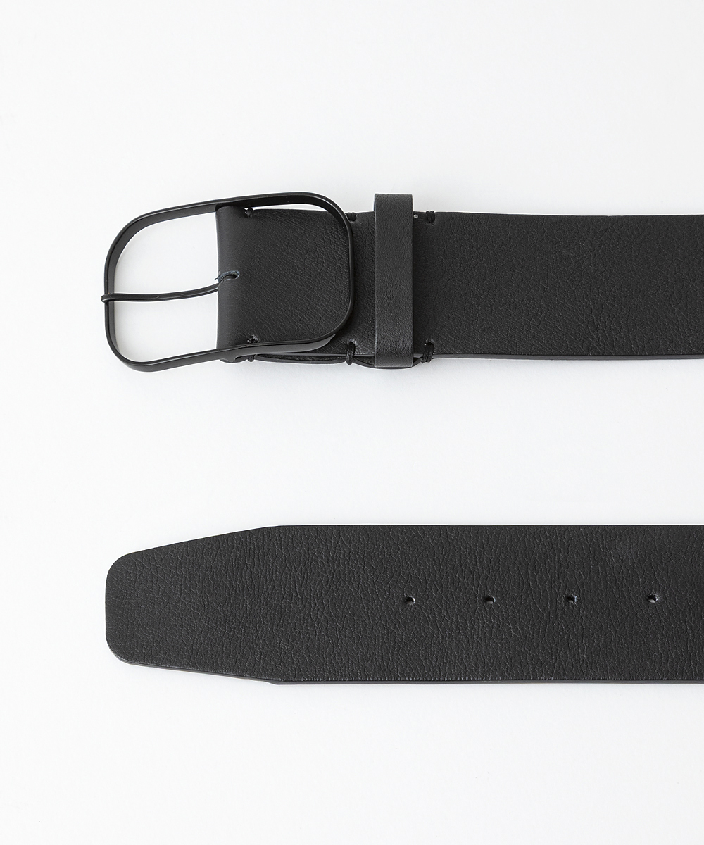 オリジナルデザインの繊細なオーバル型バックルをセットした5㎝幅ベルト。バックルはレザーとワンカラーになるようツヤ塗装しています。ホールまで丁寧に色を塗り、ハンドステッチで仕上げています。
