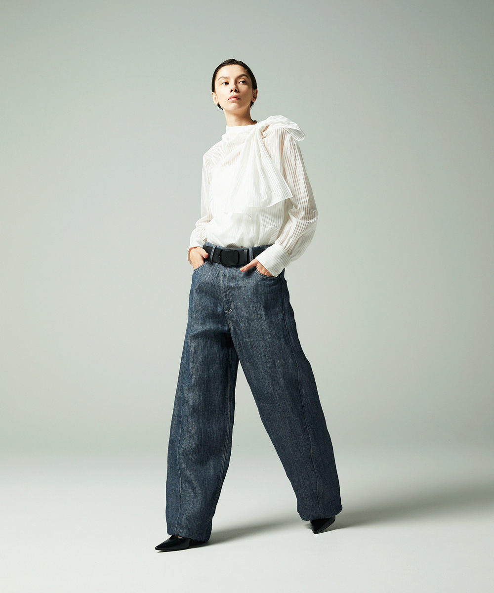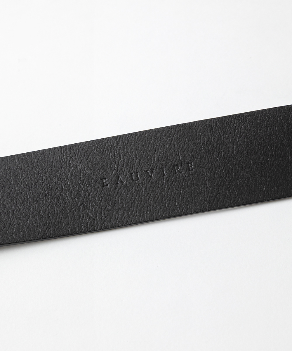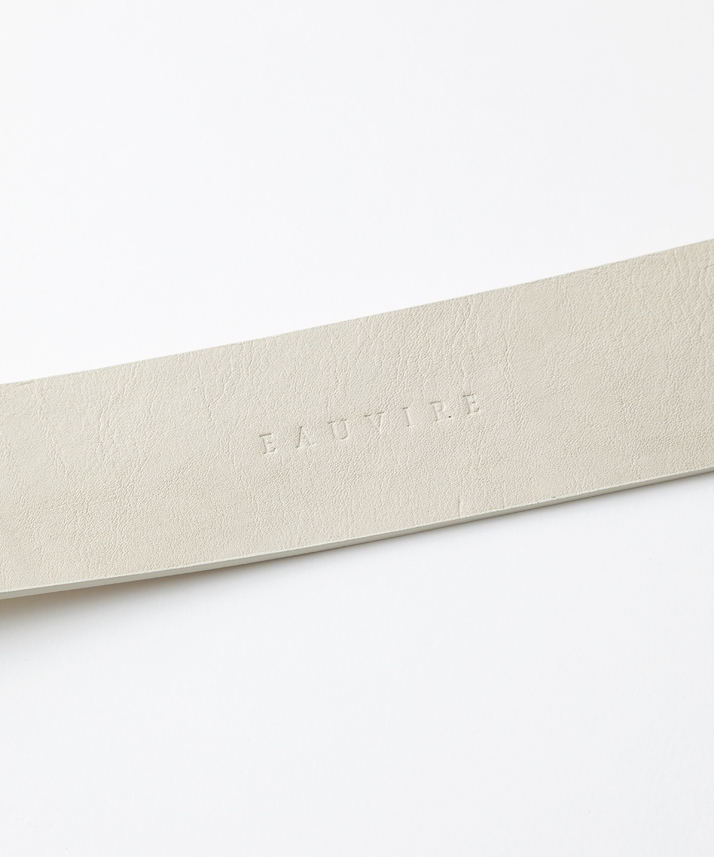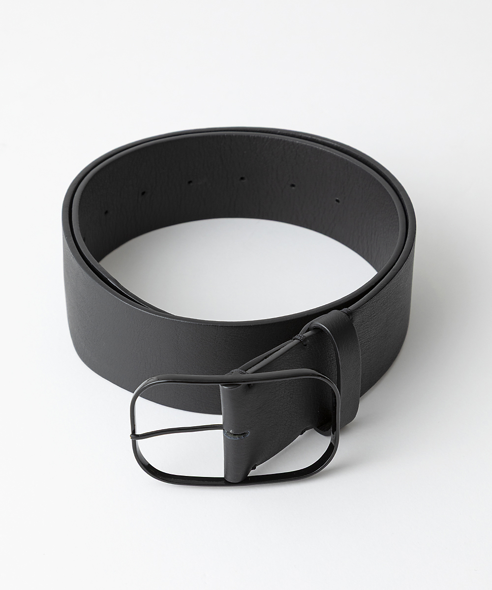 オリジナルデザインの繊細なオーバル型バックルをセットした5㎝幅ベルト。バックルはレザーとワンカラーになるようツヤ塗装しています。ホールまで丁寧に色を塗り、ハンドステッチで仕上げています。