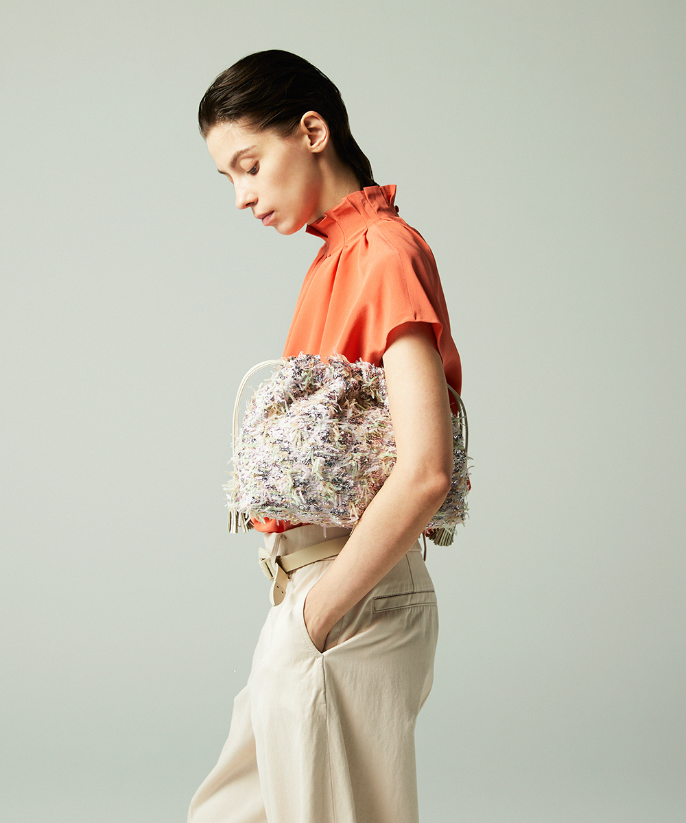 < EAUVIRE EXCLUSIVE >フリンジをあしらったレザーストラップで口を絞るデザインの横長クラッチ型バッグ。幅広いシーンにフィットするよう取り外し可能なショルダーストラップをセットしています。25FWから若干サイズアップしています。パリで創業したツイード素材においての世界が認めるリーダー的役割を今も継続してるテキスタイルメーカーの素材を使用。リボン調の柔らかな糸や華やかな輝きを作る糸など、様々な糸でジャカードに織り上げたスペシャルなサマーツイード。他にはない高級感とインパクトを持つ華やかな素材です。同素材のシリーズで、リボンツイードジレ[FGJYD12230]、リボンツイードスカート[FGHYD12130]、ショルダーストラップバッグ[FG5GD02500]をご用意いたしております。<br><br>---------------------<br><a href="https://www.eauvire.com/guide/delivery"><u><b>送料について >></b></u></a><br>1回のご注文合計金額が11,000円(税込)以上の場合、全国一律無料となります。<br><br><a href="https://www.eauvire.com/guide/return"><u><b>返品・交換について >></b></u></a><br>会員様に限りご購入いただいた商品は、一部を除き返品を承ります。交換をご希望の際は、お届けした商品をご返品後、再度ご注文ください。不良品の場合は、会員様に限らず返品・交換を承ります。<br><a href="https://www.eauvire.com/login">会員登録はこちら>></a><br><br><a href="https://www.eauvire.com/guide/request"><u><b>再入荷リクエストについて >></b></u></a><br>ご希望の商品の在庫がない場合に「再入荷リクエスト」をお申し込みいただくと、商品が再入荷した際にメールお知らせいたします。ご登録いただいた「再入荷リクエスト一覧」は<a href="https://www.eauvire.com/mypage"><u>マイページ</u></a>からご確認いただけます。<br><br><a href="https://www.eauvire.com/guide/wrapping"><u><b>ラッピングについて >></b></u></a><br>ギフト資材でラッピングした状態でご配送させていただく有料のラッピング 4,400円(税込)をご用意いたしております<br><br>