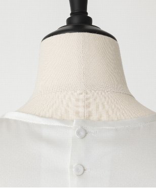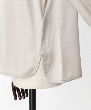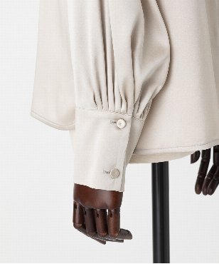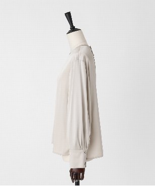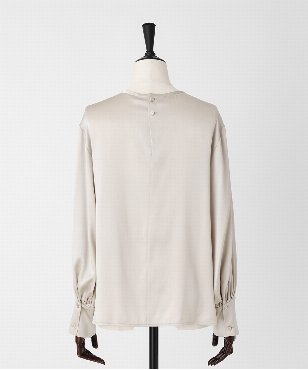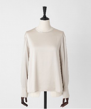 インナーとして幅広いアイテムとマッチするロングスリーブのブラウス。程よいウエイトのシルクサテンストレッチ。シルクの光沢感とストレッチ性による着心地の良さを兼ね備えた素材です。手洗い可能。