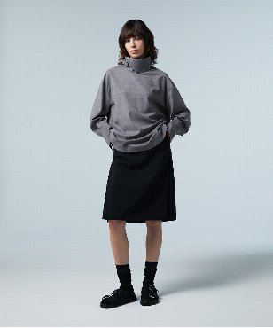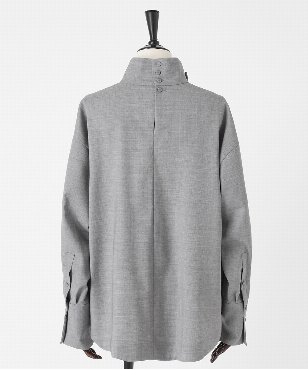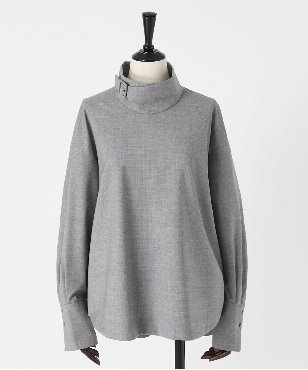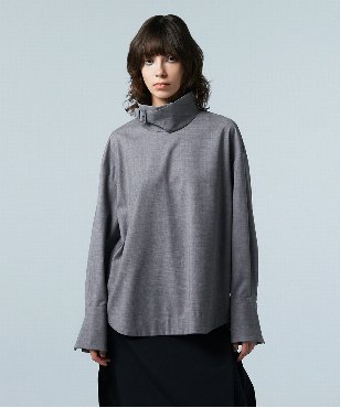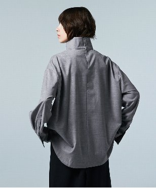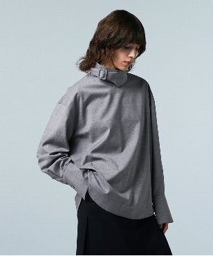 バックルディテールのハイネックプルオーバーシャツは程よいゆとりのあるシルエット。パンツとのセットアップ着用もでき、ワントーンのスタイリッシュなコーディネートが完成します。イタリアの老舗メンズテキスタイルメーカー製。Super110’sウールに生分解可能なストレッチ糸を組み合わせコンパクトに織り上げたサスティナブルな素材。軽く柔らかな艶感が特徴です。イタリアの老舗メンズテキスタイルメーカー:150年以上の歴史を持つ生地メーカーで、他に先駆けて30年以上前からサスティナビリティ、トレーサビリティに取り組んでいることで名高い。認証の厳しい「EMAS」を15年以上前から取得しており、イタリア服地メーカーとして初の「B Corp」認証も取得している。