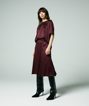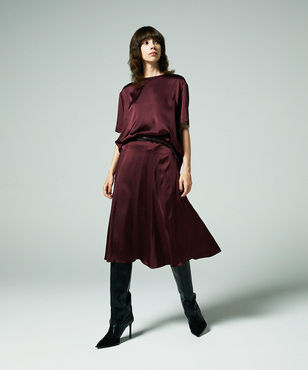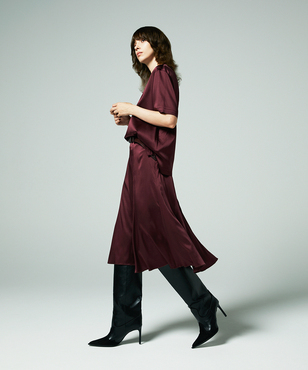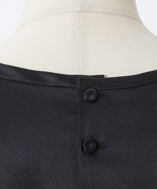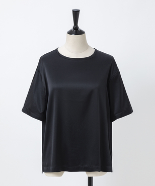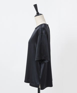 ゆとり感のある半袖シルクトップスは、Tシャツのようなディテールがアクセントになっています。程よい厚みとウエイトのシルクサテンストレッチ。シルクの光沢感とストレッチ性による着心地の良さを兼ね備えた生地です。EAUVIRE定番素材。手洗い可能。