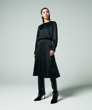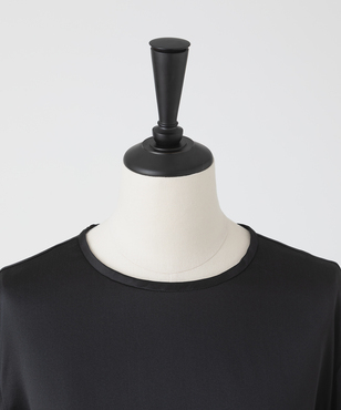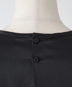 インナーとして幅広いアイテムとマッチするロングスリーブのブラウス。程よいウエイトのシルクサテンストレッチ。シルクの光沢感とストレッチ性による着心地の良さを兼ね備えた素材です。EAUVIRE定番素材。手洗い可能。