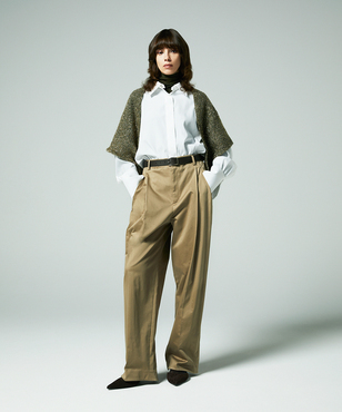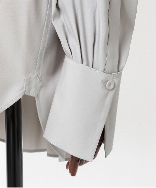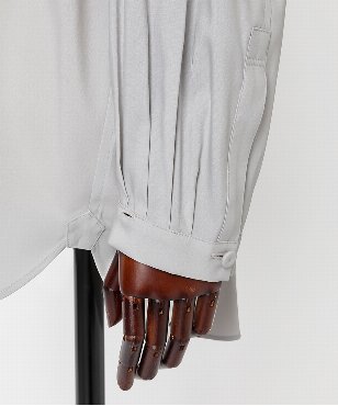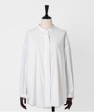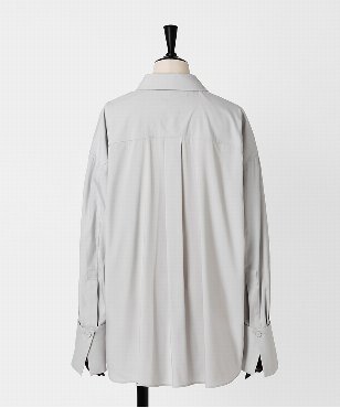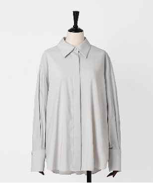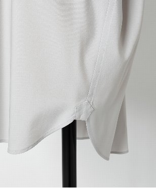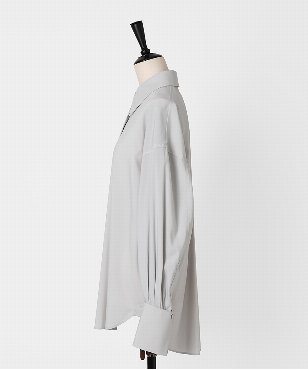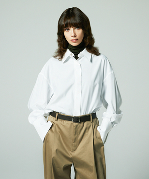 ゆるみのあるシルエットのシャツ。衿と袖口カフスはボタンで取り外しができる仕様。コーディネートに合わせて4wayで着用可能なデザインです。サーキュラーエコノミー/リサイクル素材を使用したシャツ素材。ポリエステル/ヴィスコースのしなやかな風合いはしわになりにくく、さらっとした着心地が特徴。日本製生地。