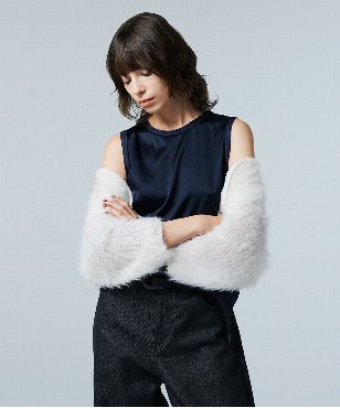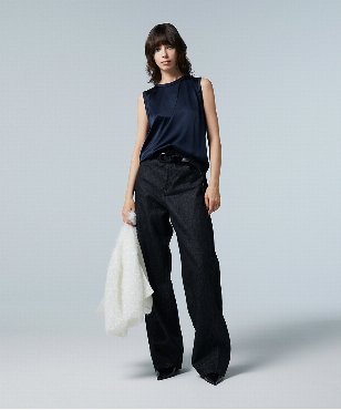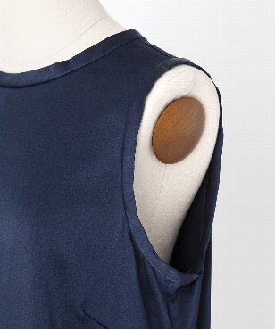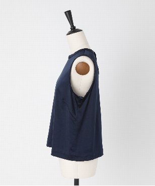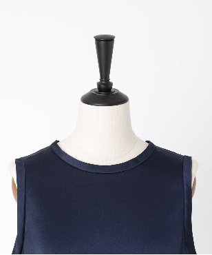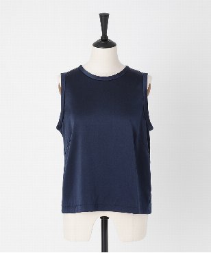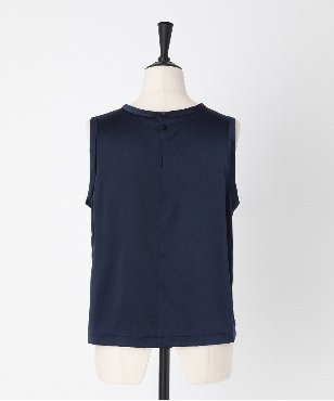 ジャケットインにも合わせやすい、カットソーディテールのノースリーブシルクトップス。程よい厚みとウエイトのシルクサテンストレッチ。シルクの光沢感とストレッチ性による着心地の良さを兼ね備えた生地です。