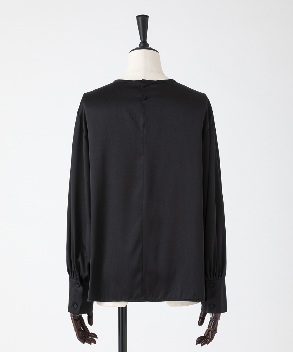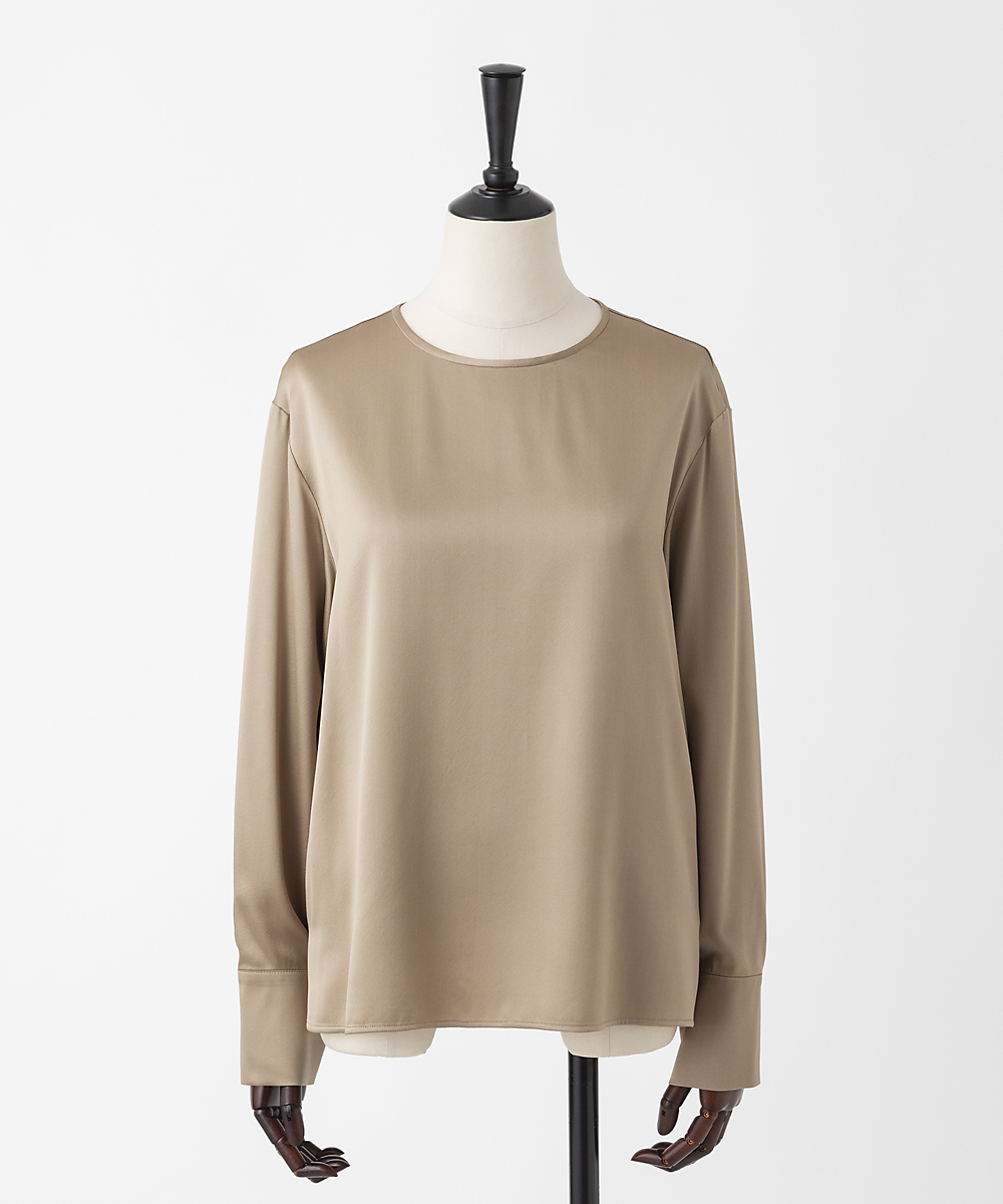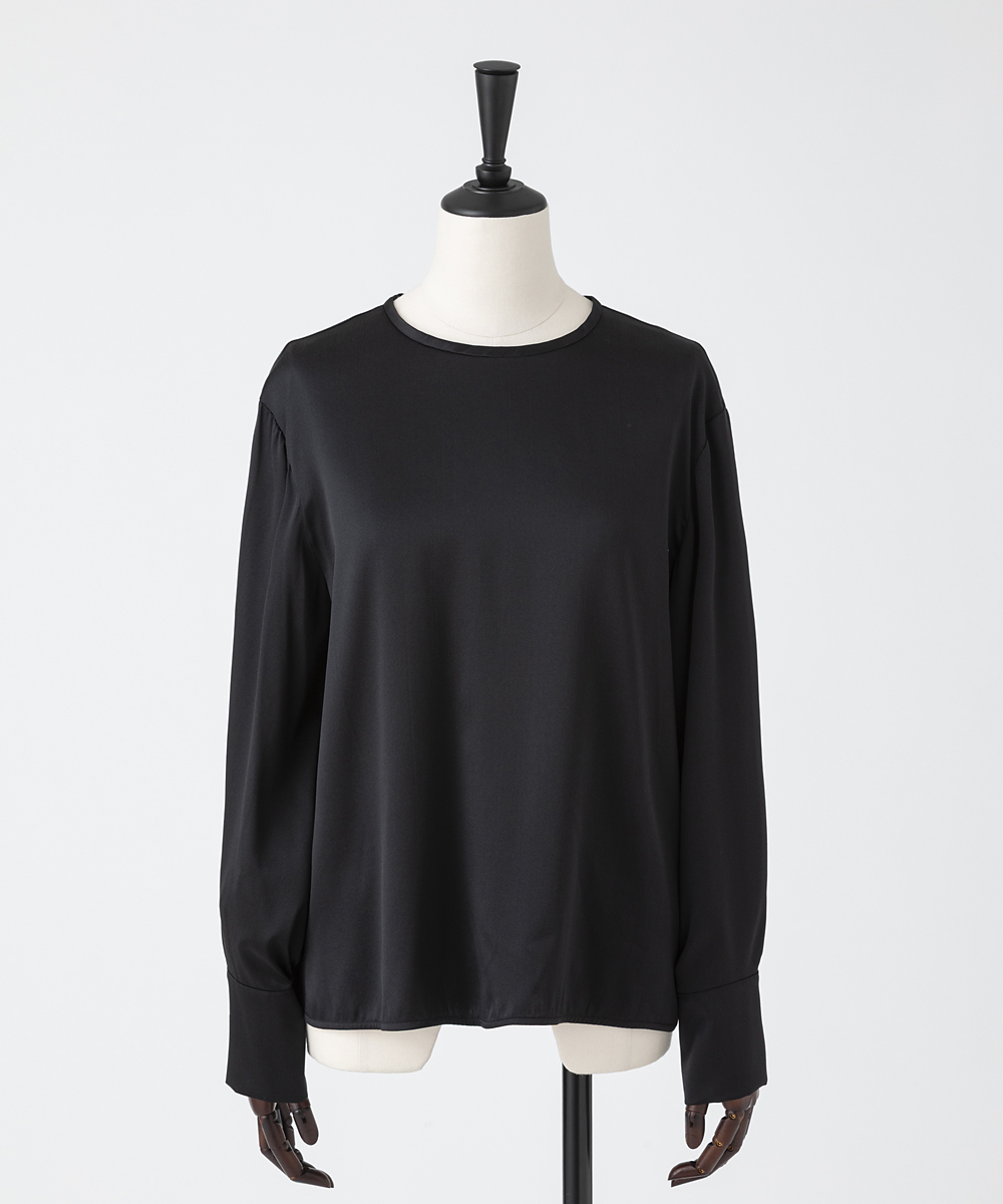 クルーネックのロングスリーブのブラウス。程よいパフスリーブでインナーとして幅広いアイテムとマッチするEAUVIRE人気の定番アイテムです。程よいウエイトのシルクサテンストレッチ。シルクの光沢感とストレッチ性による着心地の良さを兼ね備えた素材です。EAUVIRE定番素材。手洗い可能。ウォッシャブルシルクシリーズとして、ウォッシャブルシルクロングスリーブブラウス[FGBGD15390]・シルクスカート[FGHGD11580]・ウォッシャブルシルクシャツドレス[FGEYD14120]・ウォッシャブルシルクタンクトップ[FGBGA22270]・ウォッシャブルシルクノースリーブ[FGBGD24290]・ブラウスウォッシャブルシルクTブラウス[FGBGD23320]もご用意いたしております。
