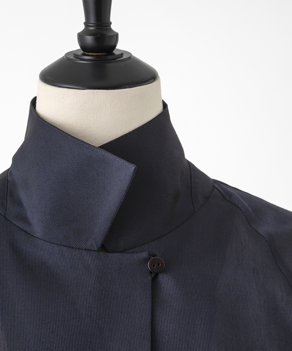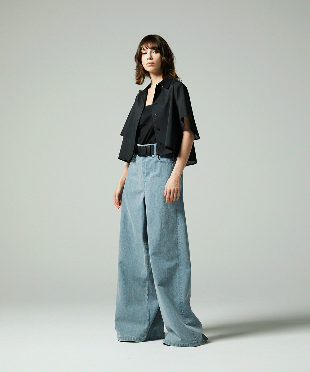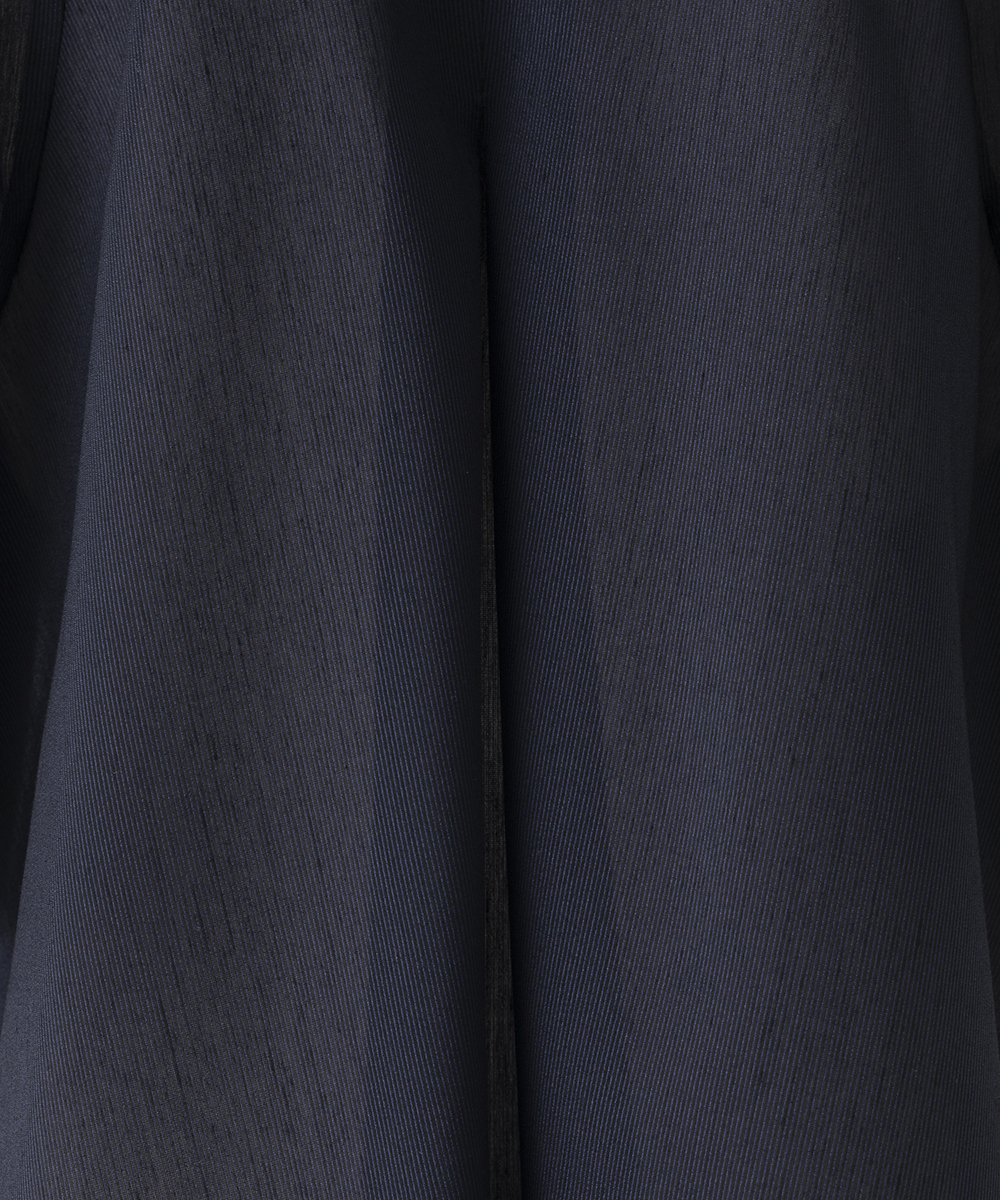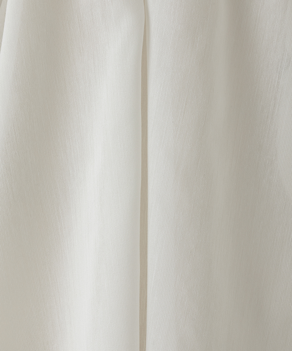 < EAUVIRE EXCLUSIVE >短めの丈感が軽やかなオープンカラーシャツ。タックフレアで生み出した袖や後身頃は着用時に動きが生まれ軽やかな印象です。羽織としても着用できます。EAUVIREエクスクルーシヴの日本製生地。軽い透け感と凹凸感のある表情、程よいハリ感が特徴の見た目にも涼し気な素材です。横糸に極細のポリエステル糸と少し太めのレーヨン糸を交互に打ち込むことにより細かいストライプのような凹凸感が生まれ、それがさらりとした肌離れの良さにつながっています。同素材バックボリュームシャツ[FGBGD40580]もご用意いたしております。