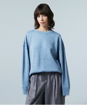 裾と袖口にあえてほつれたようなフリンジを施した、ワイドフィットなトレーナー感覚のプルオーバー。腰の隠れる長めの丈で、体のラインを強調しない抜け感のあるフォルム。カジュアルなスタイルを格上げする立体的なカッティングで、パンツスタイルにもドレッシーなスカートにも相性の良いデザインです。オーロラのような輝きを放つ極細のラメ糸を撚糸した上質なイタリア紡績糸を使用しています。滑らかな表面感とハリ感を持ち合わせた素材感のニット。同素材ラメニットフーディーFGFFV07610もご用意いたしております。