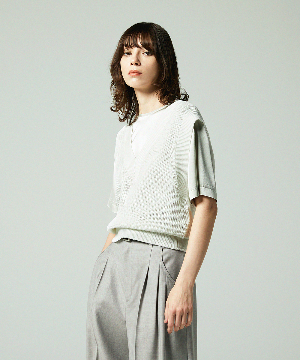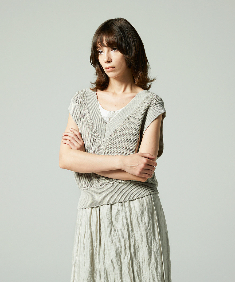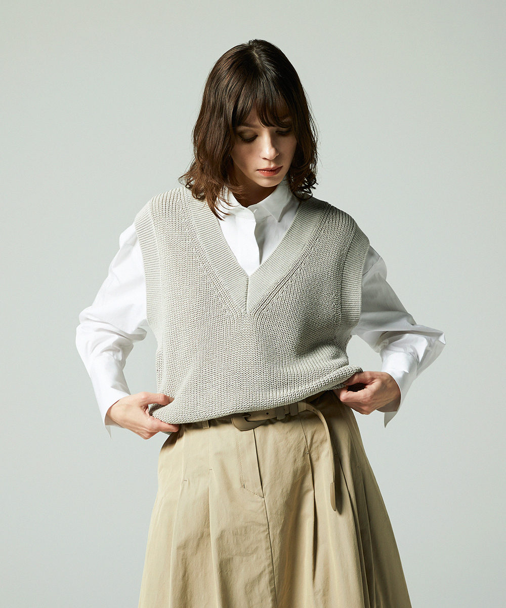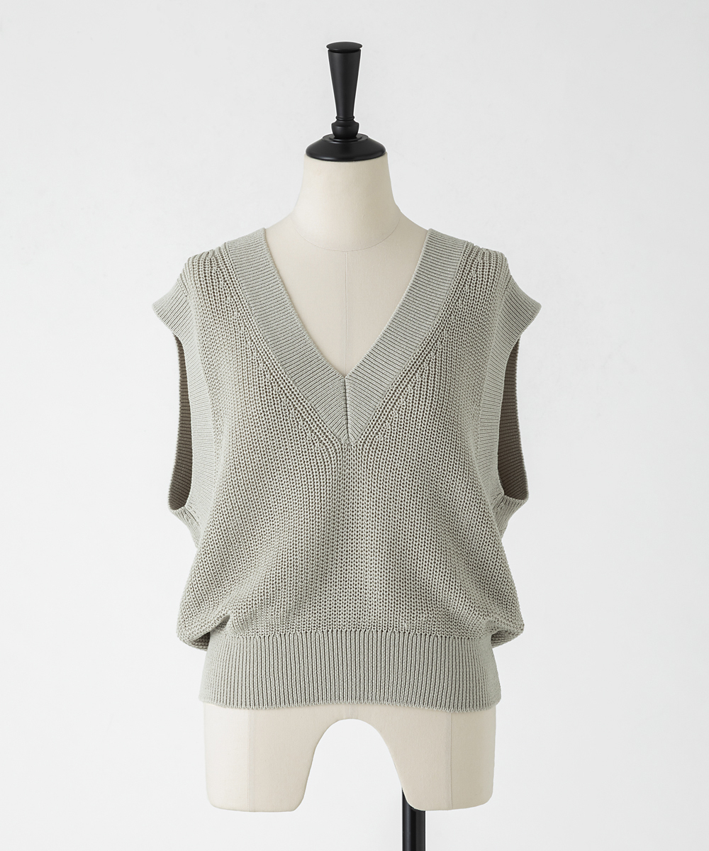 コットンリネンVネックベスト