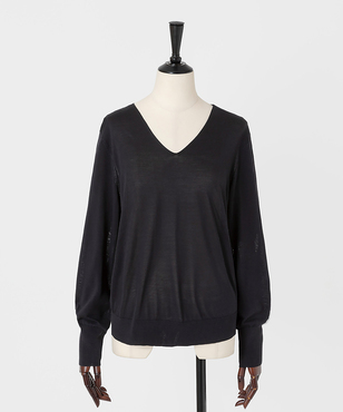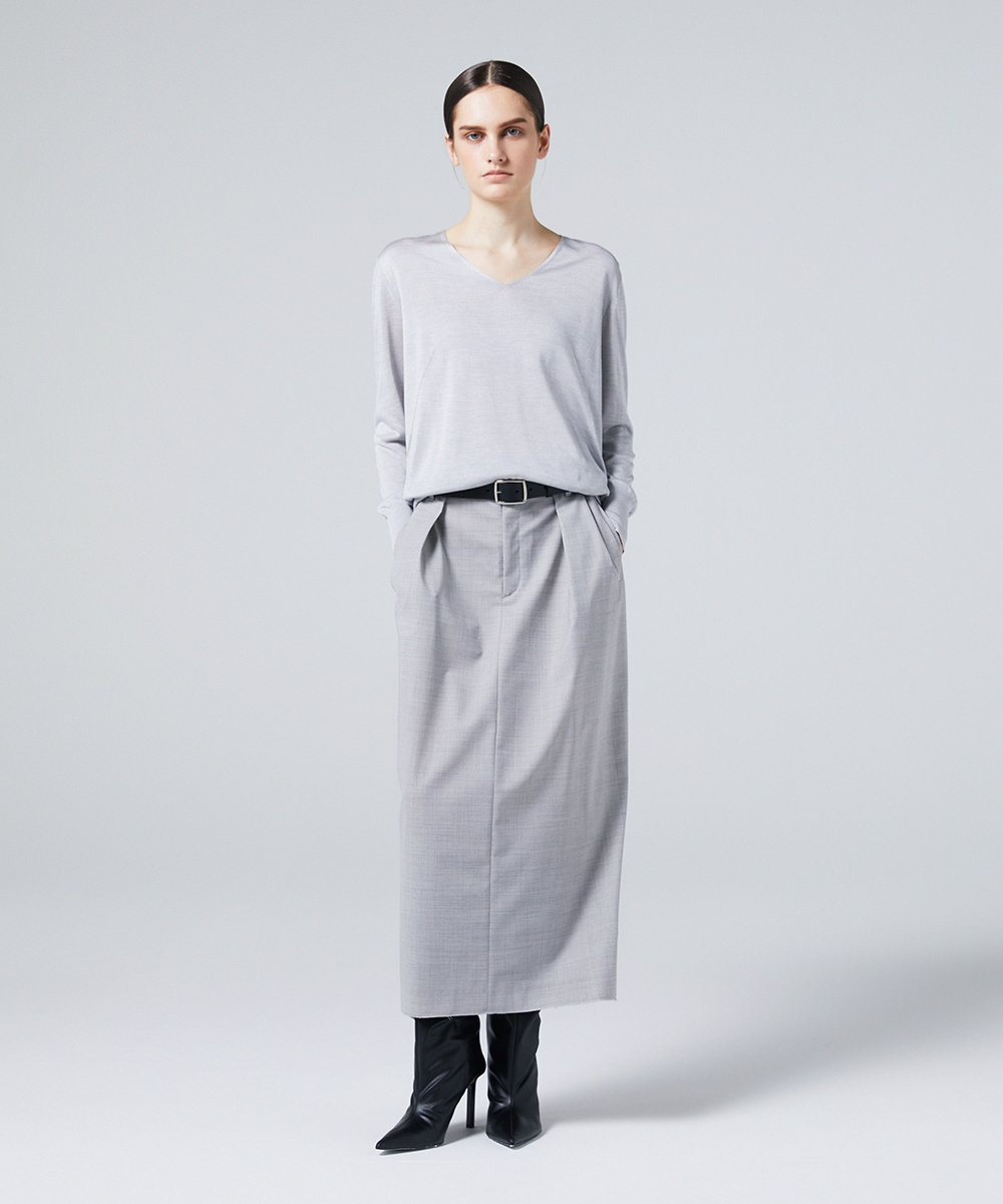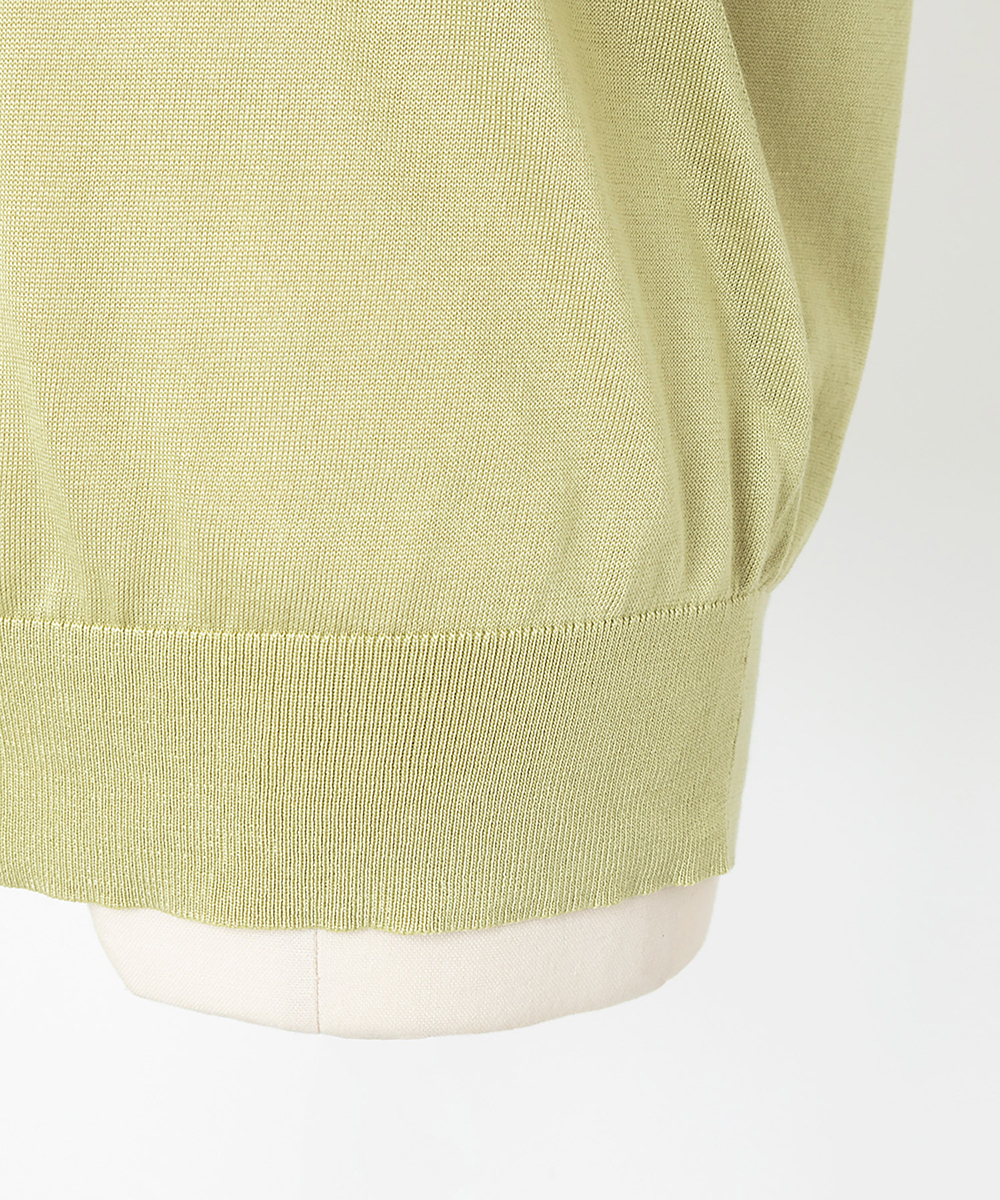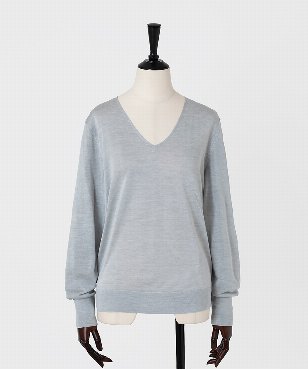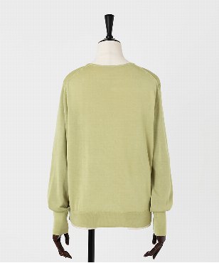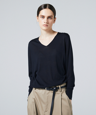 首元を美しく魅せるすっきりとしたVネックのニットプルオーバー。ハイゲージで立体的に成形する事で着心地よく美しいシルエットに仕立てています。汎用性のあるミニマルなデザインで、1枚着としてもインナーとしても活用できる、活用時期の長いアイテムです。ヨーロッパハイブランドのシルク糸を作るイタリアの工場で紡績した糸を使用しています。繭玉からとれる1本の連続した繊維(フィラメントシルク)が原料なので安価なスパンシルク(フィラメントを取った後の残りを粉砕して作る)よりも艶・しなやかさが特徴の上質なシルクです。