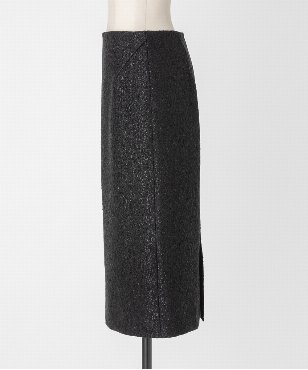ストレートシルエットのタイトスカート。すっきりとしたウエスト内側には滑り止め付きで着心地をサポート。欧州インポート素材。繊細なラメの輝きが魅力のファンシーツイード。トーンオントーンの生地と切り替える事でコントラストを効かせました。同素材ノーカラージャケットFGDVA15110とセットアップ着用可能。
