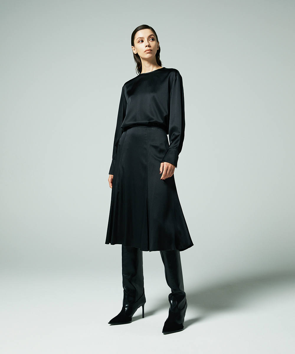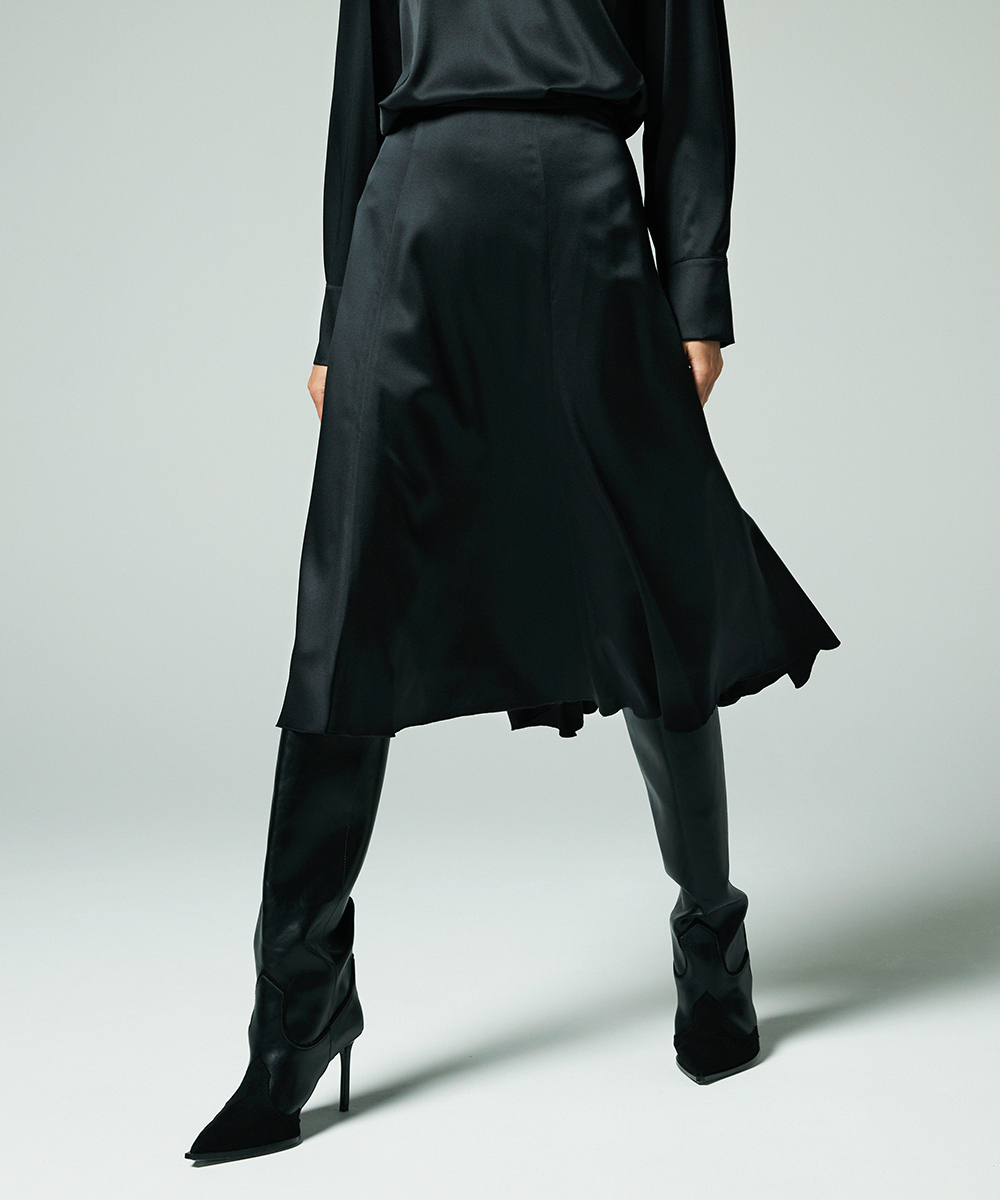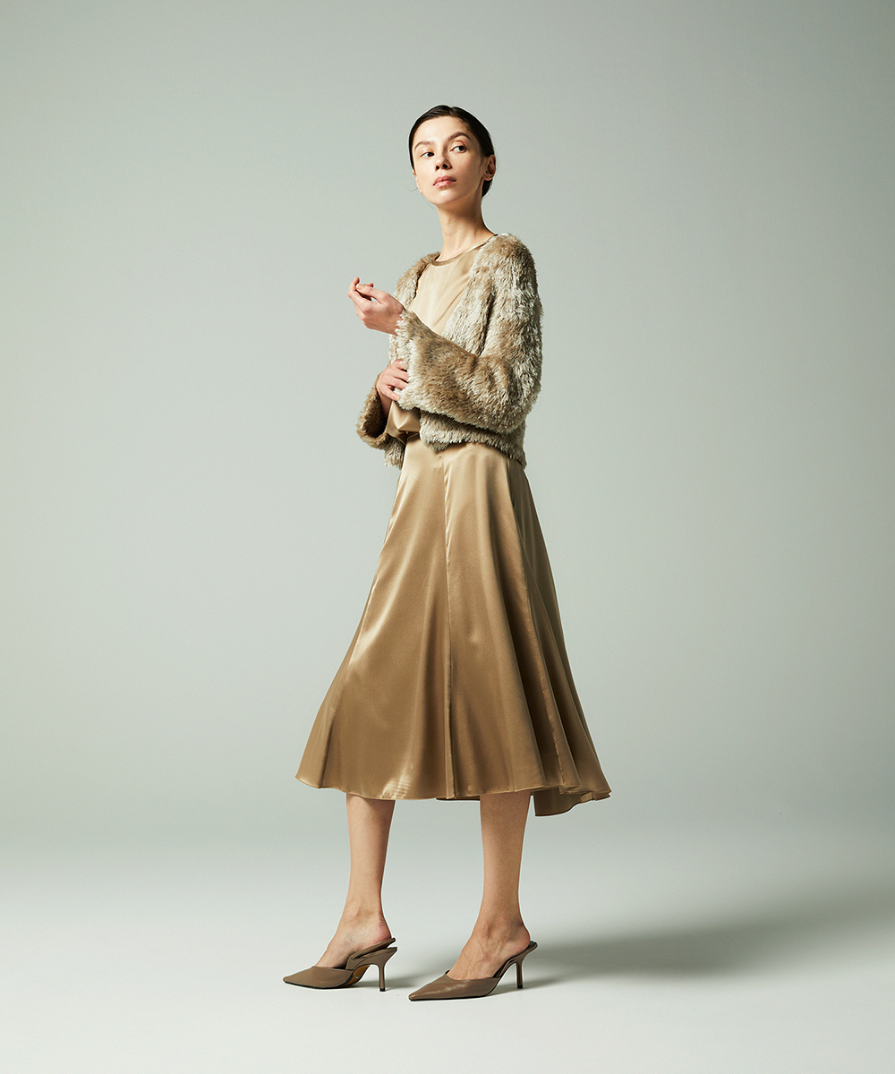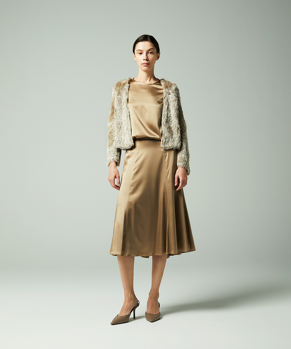 6枚接ぎのマーメイドシルエットが美しいフレアスカート。動くたびに揺れる裾が女性らしいアイテムです。同素材のトップスとのコーディネートもおすすめ。EAUVIRE人気の定番アイテムです。程よいウエイトのシルクサテンストレッチ。シルクの光沢感とストレッチ性による着心地の良さを兼ね備えた素材です。EAUVIRE定番素材。シルクシリーズとして、ウォッシャブルシルクロングスリーブブラウス[FGBGD15390]・シルクスカート[FGHGD11580]・ウォッシャブルシルクシャツドレス[FGEYD14120]・ウォッシャブルシルクタンクトップ[FGBGA22270]・ウォッシャブルシルクノースリーブ[FGBGD24290]・ブラウスウォッシャブルシルクTブラウス[FGBGD23320]もご用意いたしております。
