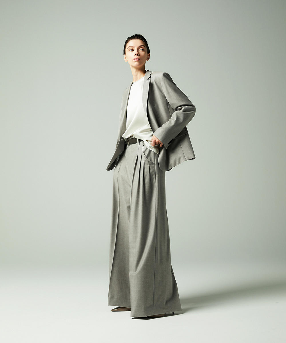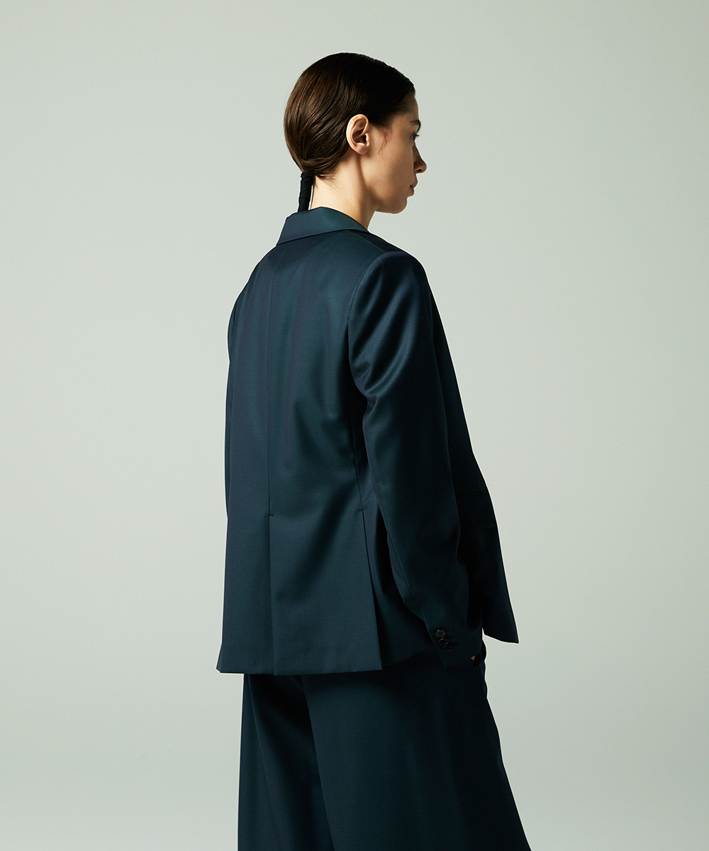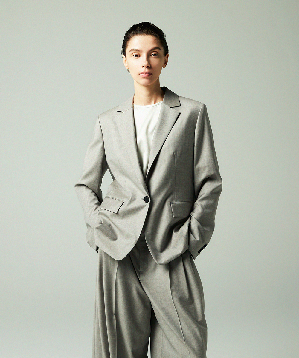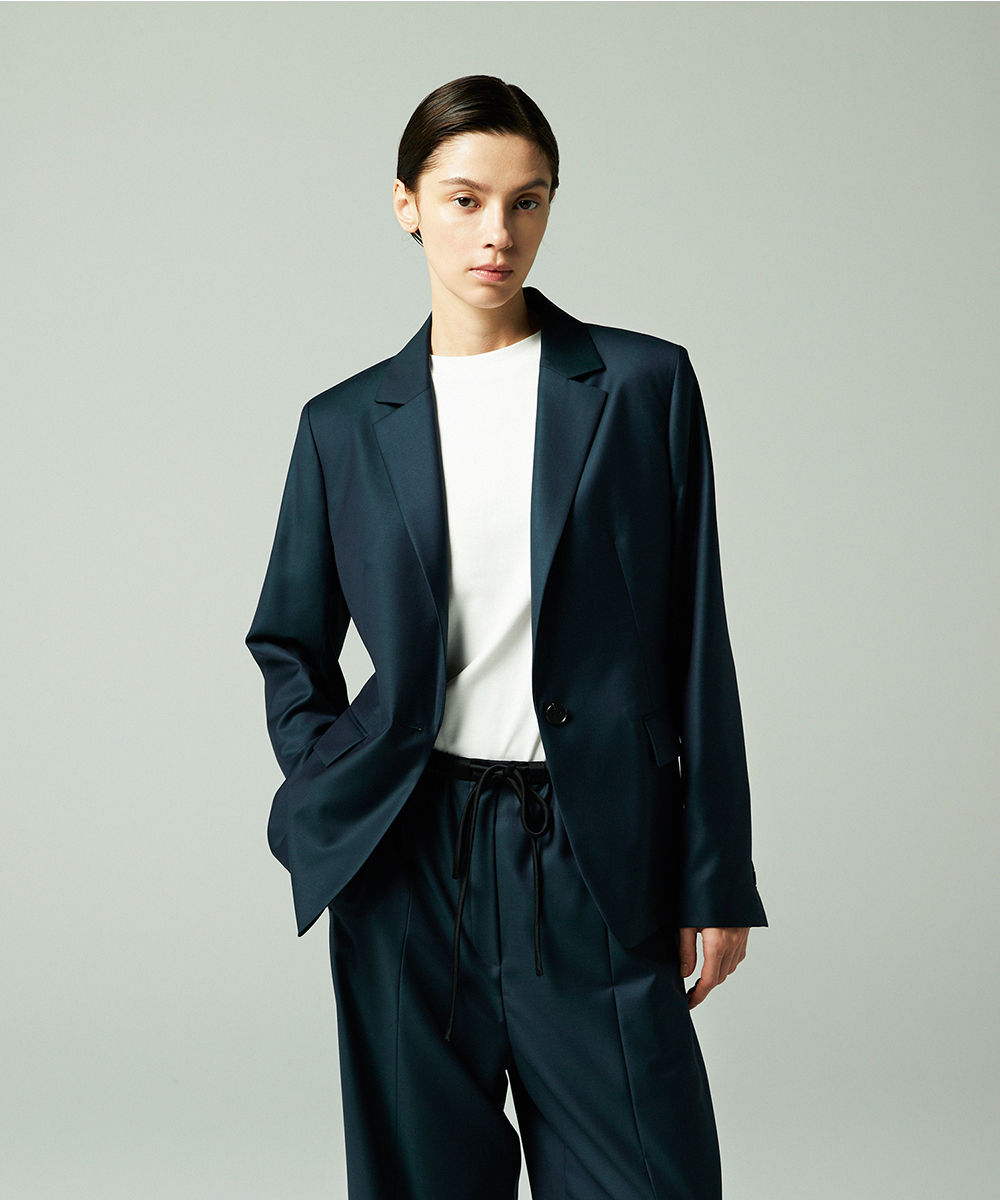 1つボタン、ノッチドラペル、裏地は背抜き仕様のジャケット。後ろ中心とサイドにベンツを入れることで軽さと抜け感を感じさせるデザインです。イタリア製生地。世界のトップブランドを主要な顧客に持つ老舗メンズテキスタイルメーカー(※)の素材。Super150’sの超細番手ウール糸を使用したツイル生地。薄く軽い生地は高級原料による滑らかな風合いと光沢感が特徴。シーズンレスで着用できる素材です。※150年以上の歴史を持つ生地メーカーで、他に先駆けて30年以上前からサスティナビリティ、トレーサビリティに取り組んでいることで名高い。認証の厳しい「EMAS」を15年以上前から取得しており、イタリア服地メーカーとして初の「B Corp」認証も取得している。同素材ジャケット[FGJYD10120]・3タックワイドパンツ[FGLGD10780]・ドローストリングパンツ[FGLGD04630]をご用意しておりますので、セットアップでもご着用いただけます。