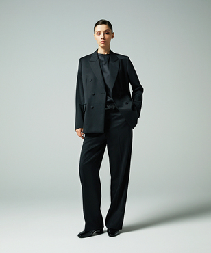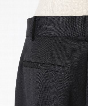 ノータックでシャープなシルエットのパンツ。足を細く長く見せてくれます。同素材の2型のジャケットともセットアップで着用可。ウエスト裏はマーベルト仕様。Super120’sの細番手ウール糸を使用したドスキン生地で、オフスケール加工をしているため発色性が高い素材です。シワになりにくく着心地の良い上質な風合いです。日本製生地。