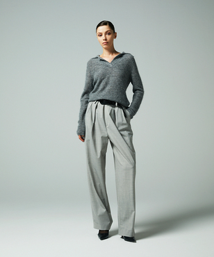 ウエストベルトをタック状に折りたたんだディテールが特徴的な、ゆるみ感のあるワイドテーパードパンツです。細番手のウールポリストレッチ。薄手で軽量、シワになりにくい素材をTOPカラーで展開。日本製生地。同型別素材FGLDV07560・同素材トラウザー風ストレートスカートFGHDW07540・ソフトプリーツロングスカートFGHDV09680もご用意いたしております。もご用意いたしております。