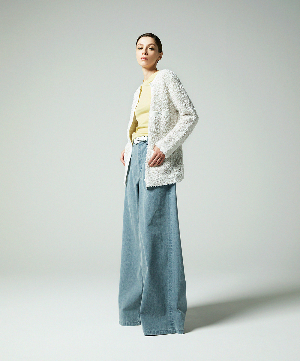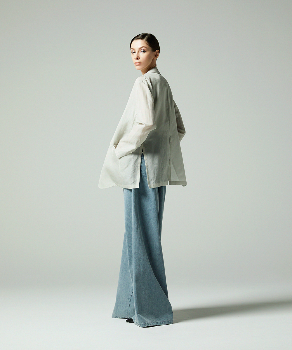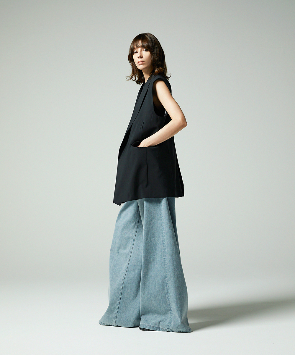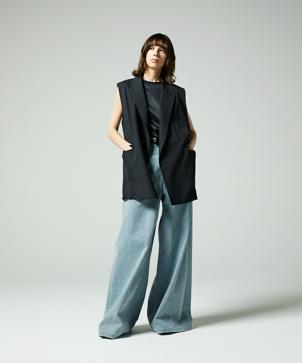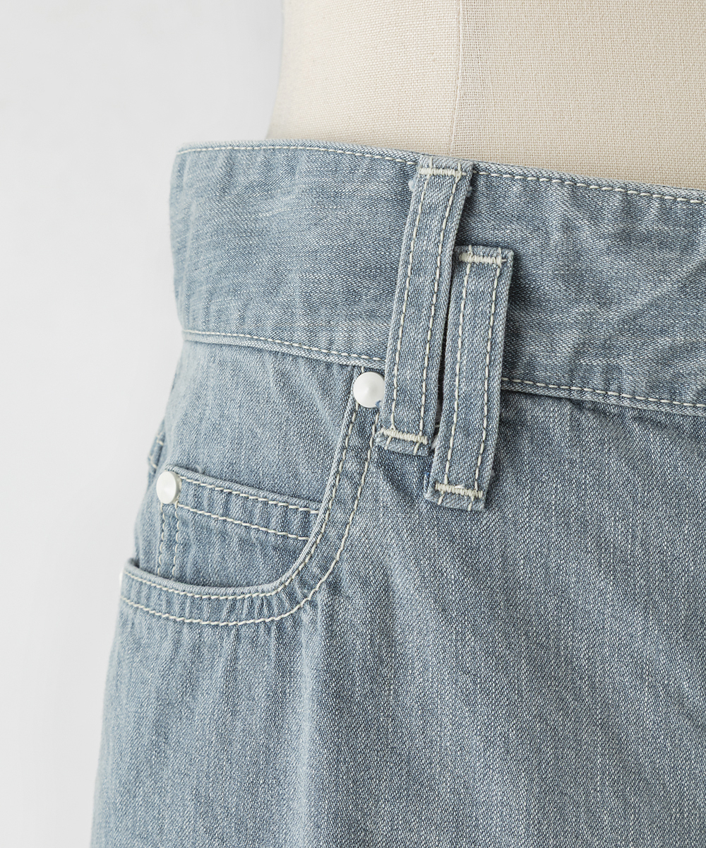 ワイドな裾幅を持つデニム。ボリューム感はありながらも腰まわりはすっきりとしたシルエットに仕立て、コーディネートしやすいバランスにしています。オフホワイトに塗装したオリジナルコインボタンやリベット、ホワイトのレザーパッチがアクセント。横糸にグレーの杢糸を打ち込んだムラ感のある軽めの9.5オンスデニムを、特許技術である海洋深層水でブリーチ&洗い加工した日本製素材。高知県室戸岬のミネラル豊富な海洋深層水でブリーチすることで、独特な深みのあるグレイッシュなカラーに。科学薬品ではなく天然水を使用することで生地を痛めることなく、環境にも優しい加工となっています。※画像はサンプルです。※実際の商品とはレザーパッチのステッチの入り方、位置が異なります。※こちらの商品はラッピング不可アイテムです。
