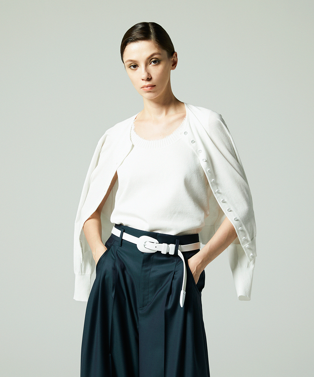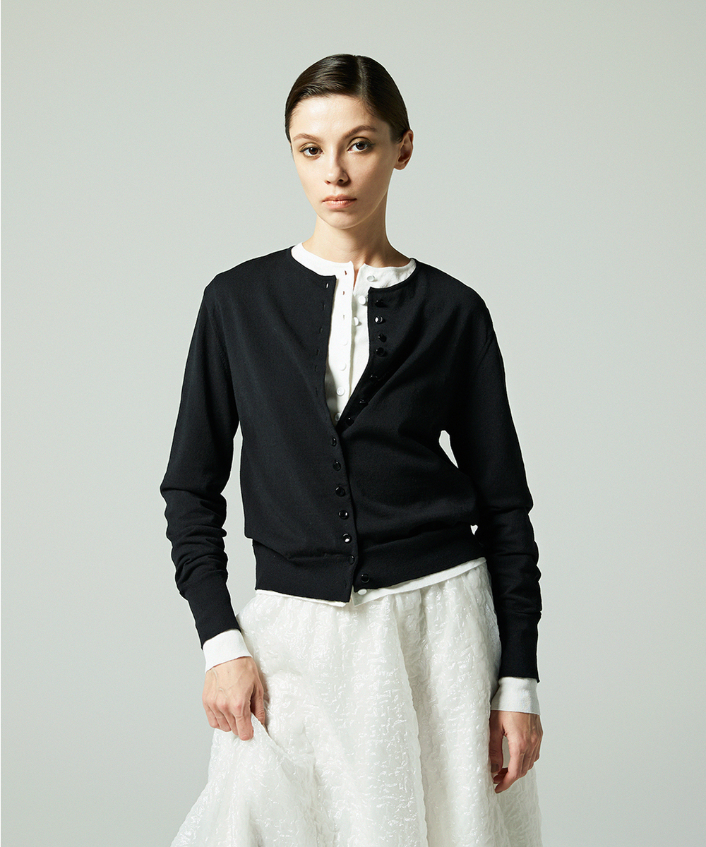 ベーシックながらも、前立てに連なる小さな同色塗装ボタンが前立ての装飾性を出し、シンプルなデザインでもインパクトのあるカーディガンに仕上げてました。日本製糸超⾧綿と麻の混紡糸にポリエステルを撚糸した素材。毛羽の少ない綺麗な目面で、清涼感のあるさらっとした風合いで盛夏にも着用できます。ポリエステルを合わせたことでシワになりにくく、縮率も安定し手洗いが可能になりました。同素材のシリーズでコットンリネンニットタンク[FGFGD11490]・コットンリネンカーディガン[FGSGD10590]・コットンリネンVネックベスト[FGFGD10490]をご用意いたしております。※こちらの商品はラッピング不可アイテムです。