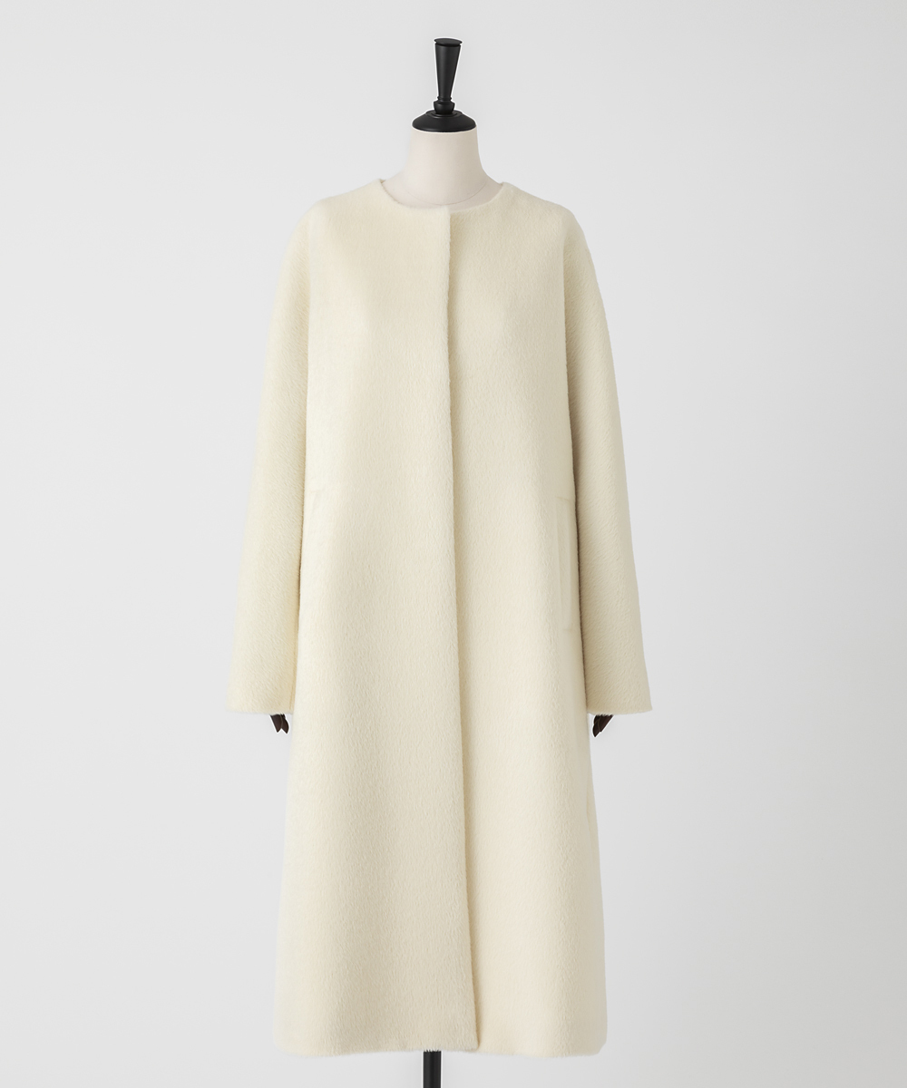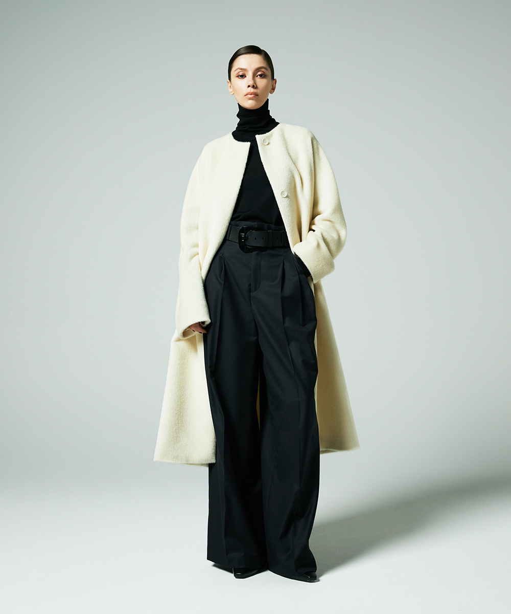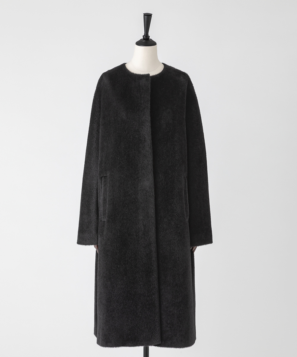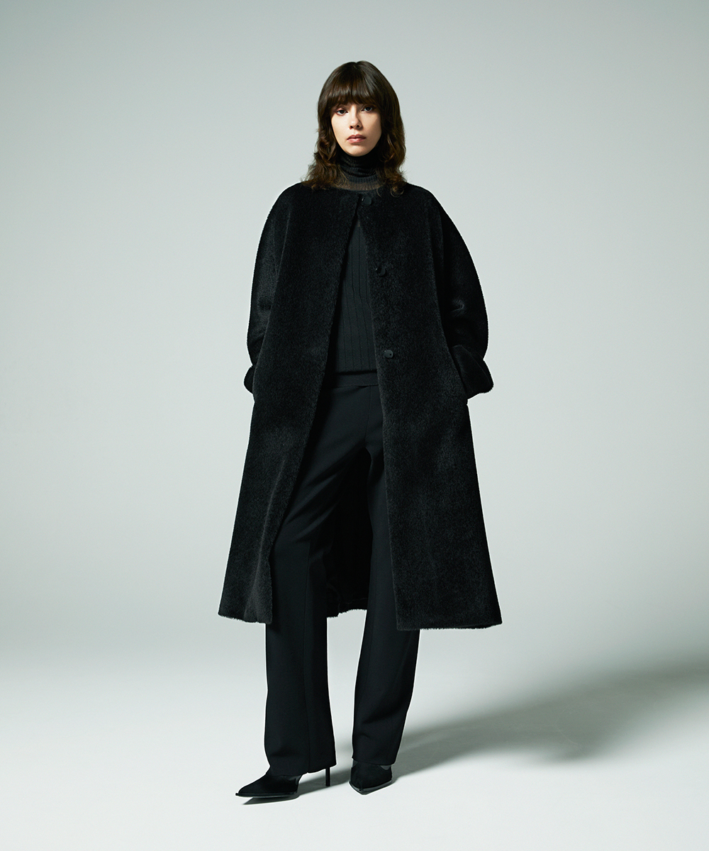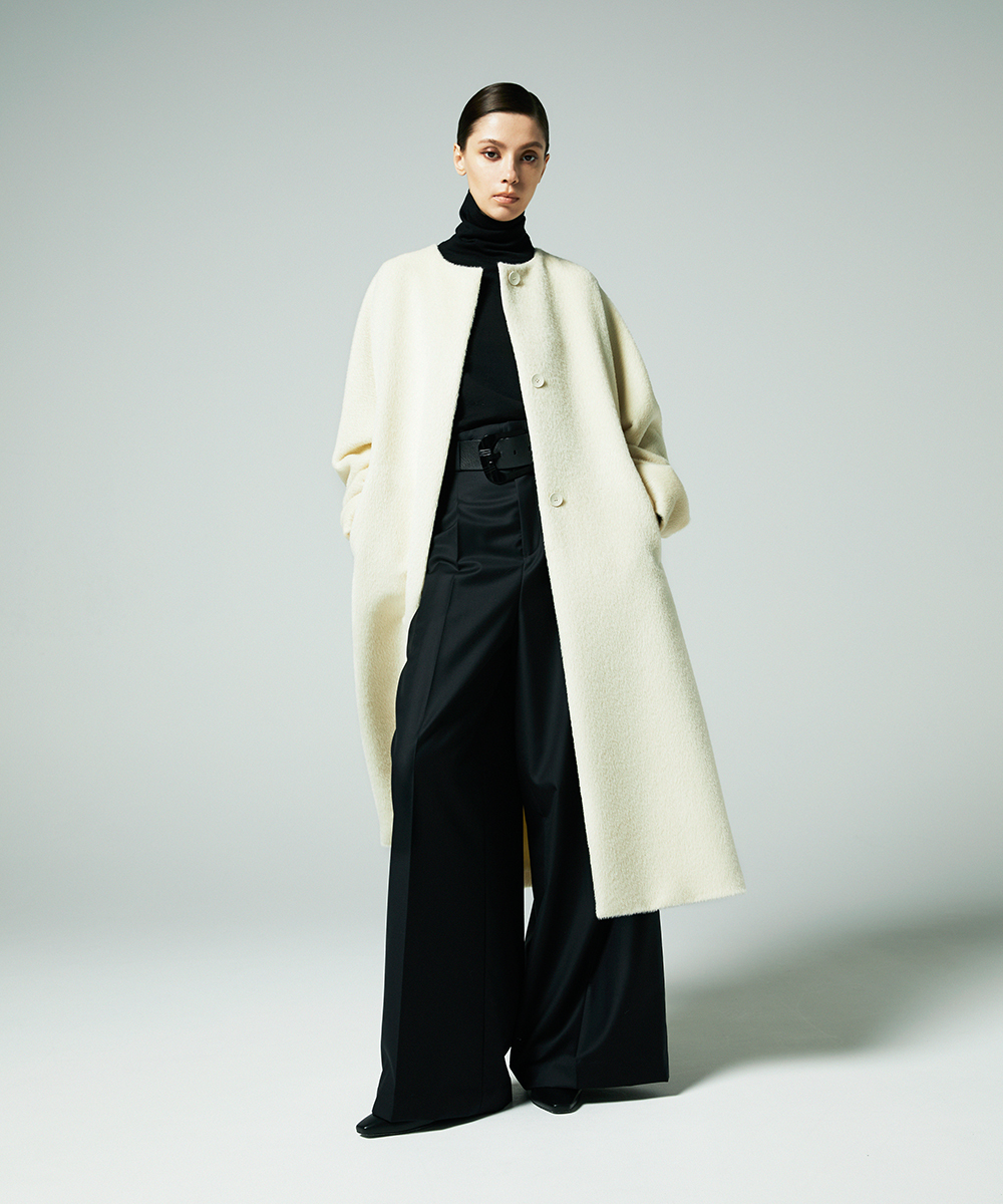 2024FWシーズン好評だったコートをよりラグジュアリーにブラッシュアップさせました。身頃から続くやわらかでボリュームのある袖、特徴のあるポケットがアクセントになったコートはどんなアイテムともなじみ、スタイリングを格上げしてくれます。イタリア製、最高品質のスーリーアルパカコート素材。細く柔らかい毛足が特徴の希少なスーリーアルパカを贅沢に使用しつつ、バージンウールとミックスさせることで美しい光沢を持つシャギーのコート地に仕上がっています。