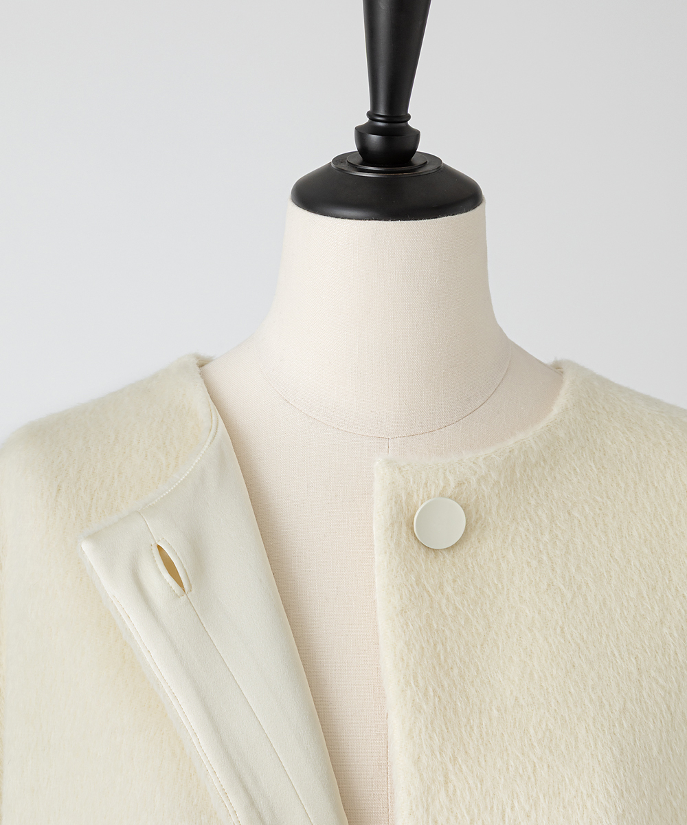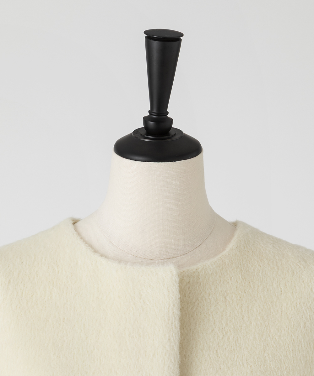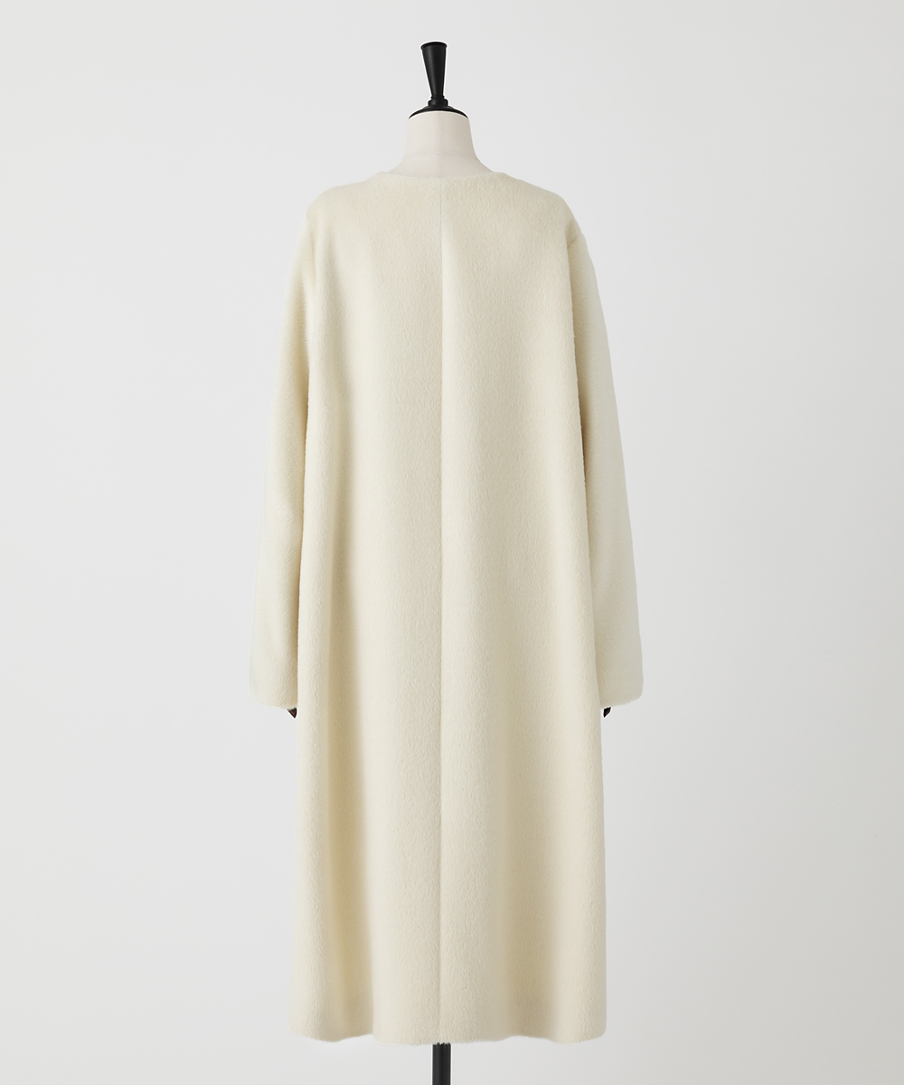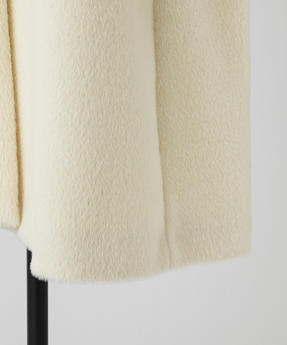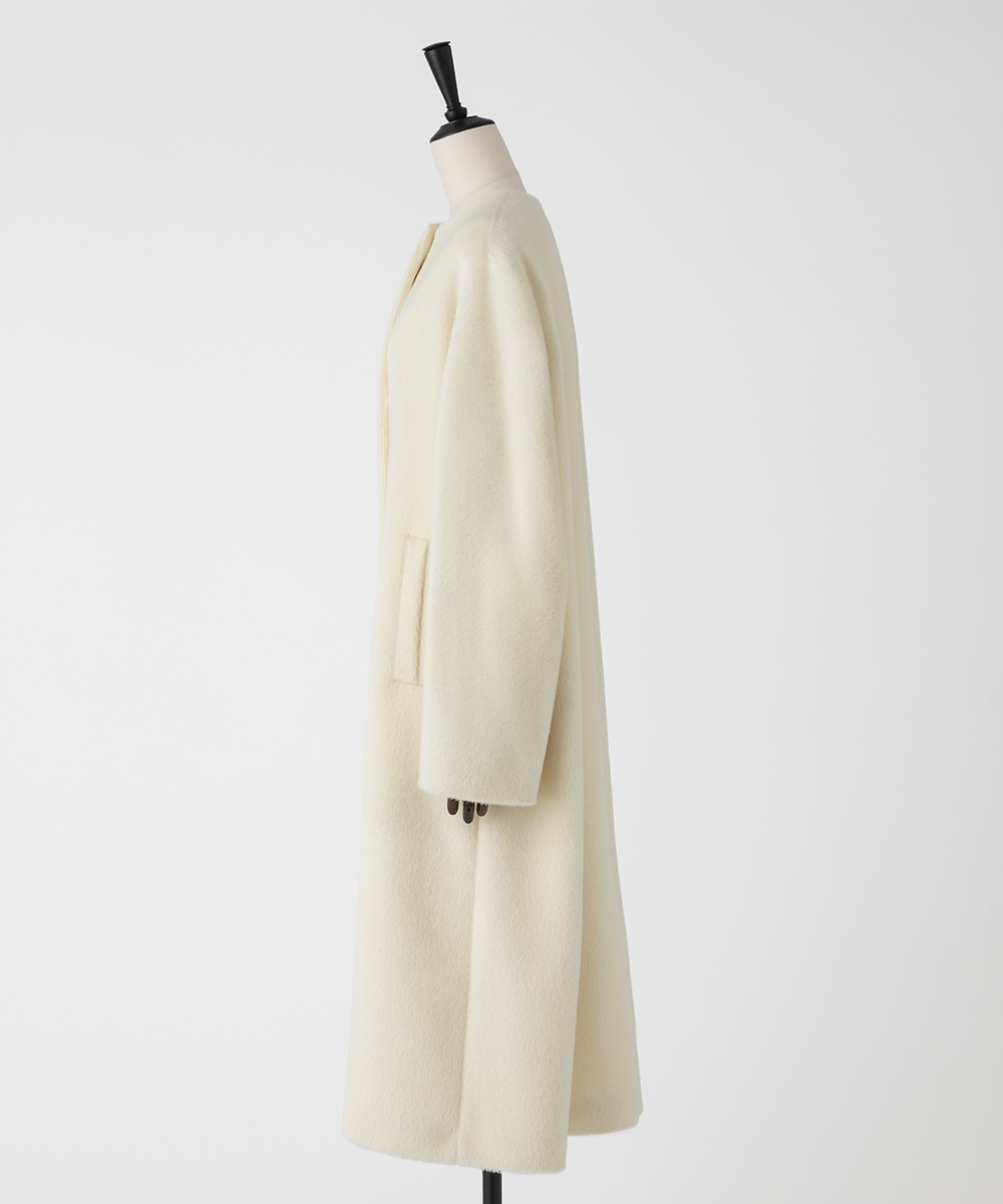 2024FWシーズン好評だったコートをよりラグジュアリーにブラッシュアップさせました。身頃から続くやわらかでボリュームのある袖、特徴のあるポケットがアクセントになったコートはどんなアイテムともなじみ、スタイリングを格上げしてくれます。イタリア製、最高品質のスーリーアルパカコート素材。細く柔らかい毛足が特徴の希少なスーリーアルパカを贅沢に使用しつつ、バージンウールとミックスさせることで美しい光沢を持つシャギーのコート地に仕上がっています。