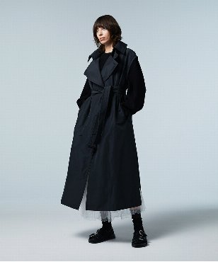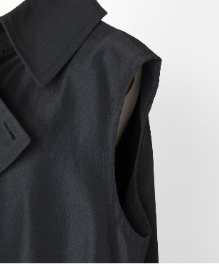 トレンチデザインのロングジレは、組み合わせによって長い期間着用可能なアイテム。取り外し可能なヤクMIXパディングのキルトライナー付き。強度に優れたアラミド繊維(※1)を混紡したポリエステルタフタで、独特のハリ感を持った素材です。イタリア製。ライナーには、ヤクMIXパディング(※2)のキルトを使用しています。※1:アラミド繊維:ナイロンと似た構造を持つ合成繊維で、耐熱性、耐摩耗性の高い素材です。 ※2:ヤクMIXパディング:カシミアを凌ぐ暖かさを持つヤクの落ち毛と、リサイクルペットボトル等の原料で作られたポリエステルわたをミックスした中綿。暖かさだけではなく、フェアトレードや動物愛護、サスティナブルな観点も兼ね備えた素材です。